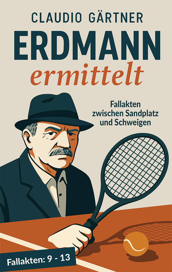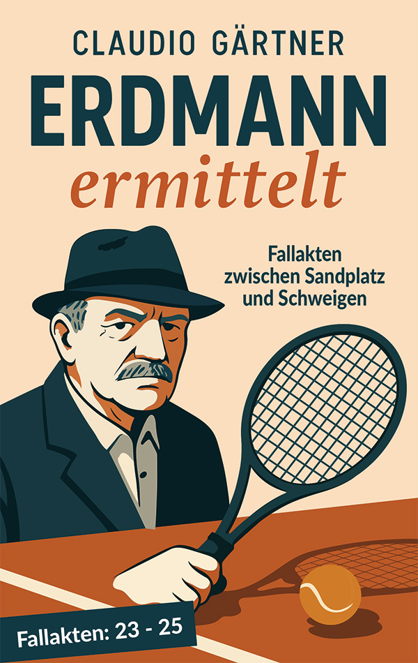 In diesem Bereich sammeln wir all jene Bücher der Serie „Erdmann ermittelt“, die bisher erschienen sind – Fallakten, ordentlich abgeheftet, mit Spuren, Indizien und einem ordentlichen Schuss Humor. Jeder Band enthält mehrere eigenständige Kriminalgeschichten, in denen zwischen Ascheplatz und Vereinsbüro die Abgründe der Berliner Tenniswelt sichtbar werden.